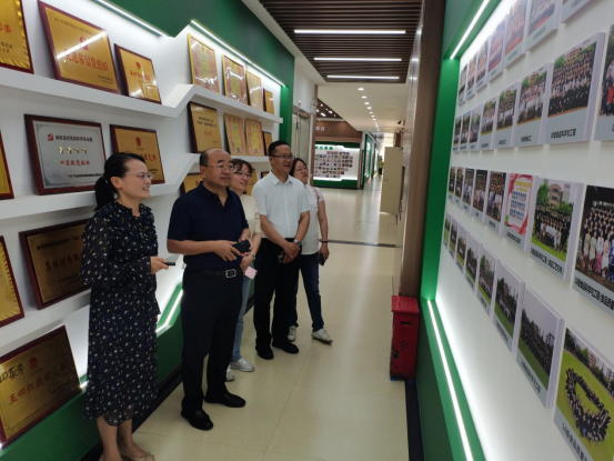 调研期间,蔡文副书记带领王子荣经理参观了广西“双带头人”教师党支部书记工作室、党员活动室、广西康养食品科学与工程技术重点实验室和学院成果展厅。